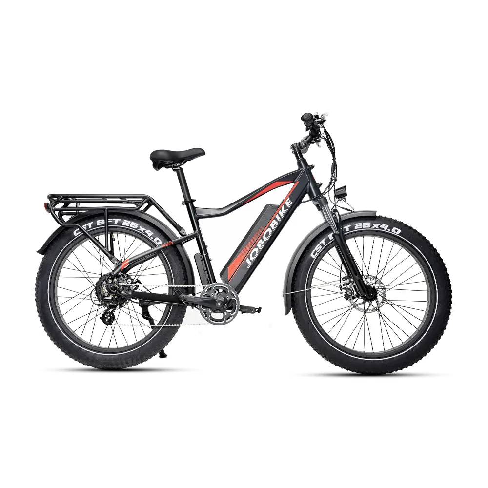 Fatbike Robin to najmocniejszy i najbardziej dynamiczny rower elektryczny JOBOBIKE.Robin sprawdzi się na wyboistych, leśnych, górskich, a nawet zaśnieżonych terenach. Na tego typu podłożach rowery fat bike sprawdzą się wyśmienicie, podczas gdy rowery z cieńszą oponą po prostu będą się zapadać. Możesz jechać wszędzie tam, gdzie nie dojadą zwykłe rowery górskie. Podłoża górskie i leśne trasy, trudny teren to dla roweru elektrycznego Robin żadna przeszkoda! Fat bike pomimo swojego przeznaczenia nie ustępuje designem innym rowerom elektrycznym JOBOBIKE.