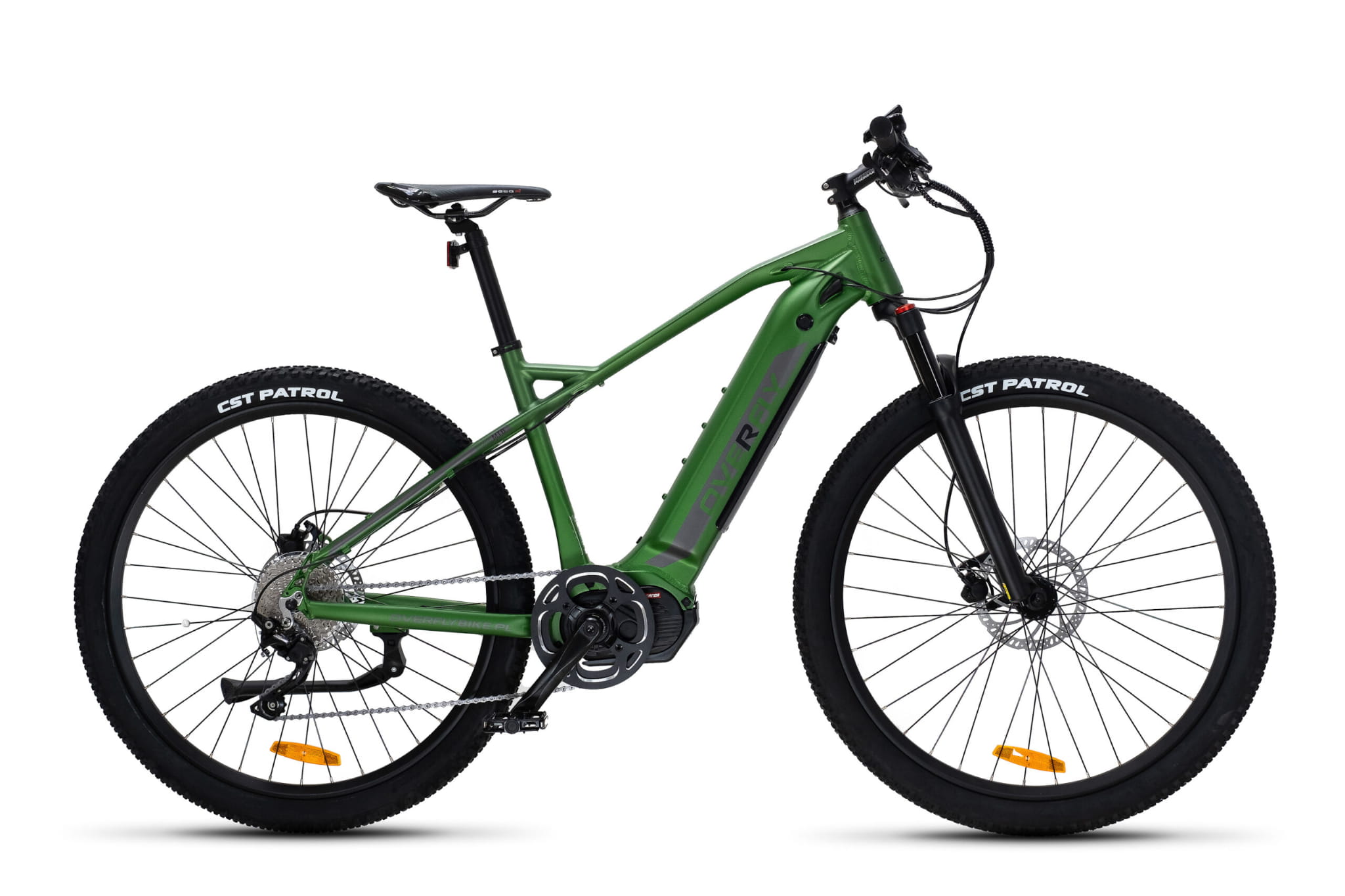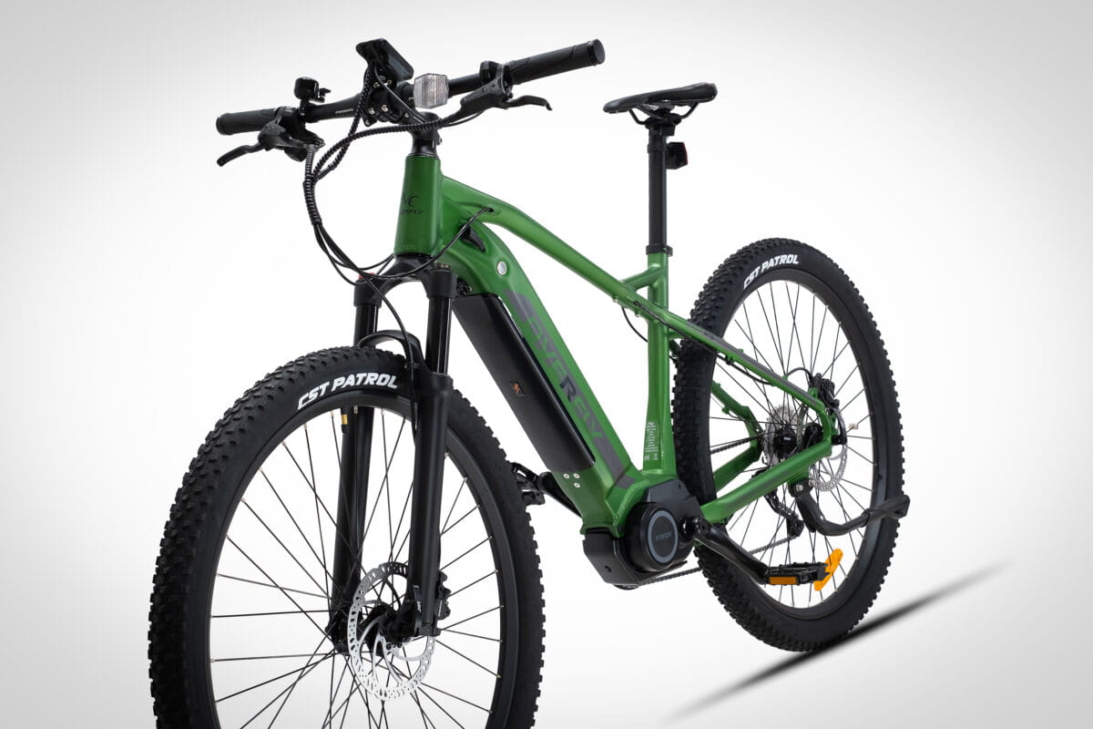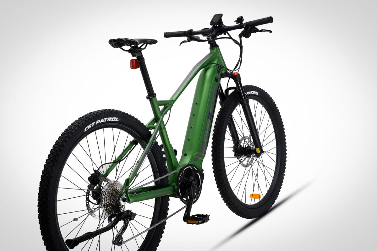 3 lata gwarancji na baterię w każdym rowerze Overfly. 29 calowe koła. Rama 18,5″. Rower elektryczny posiada 5 stopni wspomagania. Maksymalna prędkość wspomagania to 40 km/h. Ograniczona zgodnie z normą UE EN 15194 do 25 km/h. Posiada tryb prowadzenia „walk” do 6 km/h. Kolorowy wyświetlacz LCD wskazuje takie parametry jak aktualną prędkość, poziom naładowania baterii, przejechaną odległość, łączny przejechany dystans. Posiada złącze USB, które może być wykorzystane do ładowania np. telefonu. Bateria roweru umieszczona w ramie poprawia wyważenie roweru. Istnieje możliwość zamontowania dodatkowej baterii na ramę o pojemności aż 17.5 Ah (840 Wh). Opony o szerokości 2.25 cali z agresywnym bieżnikiem w połączeniu z amortyzatorem o skoku 100 mm gwarantują dobrą trakcję w terenie. Centralny silnik Ananda o napięciu 48 V ma wysoki moment obrotowy 130 Nm! Występuje w wariancie z większą baterią 14.0 Ah (672 Wh). Ładowarka w zestawie.Wyposażenie